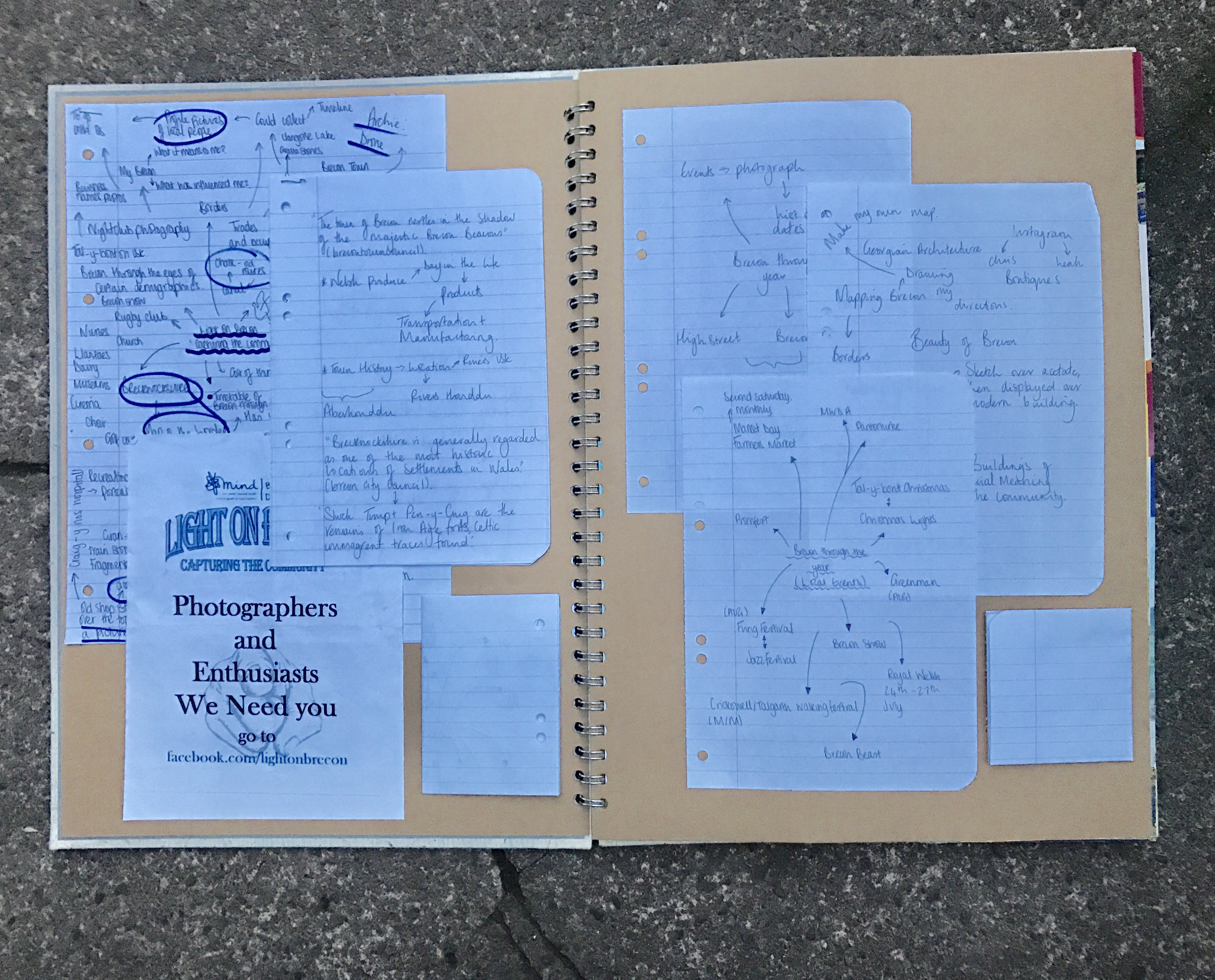 When researching initial ideas for this residency I became aware of a local project advertised through ‘F.Y.I Brecon’, which stated that the local community are running a project to encourage Breconians to engage with town activities and record these events through various mediums. “The concept of Light on Brecon is to have local people and volunteers take a range of pictures and art work of Brecon town throughout the year up to April 2018,… to show off Brecon at its best and show the great buildings, people, businesses, and events that this town has” (Sourced from advertisement flyer).