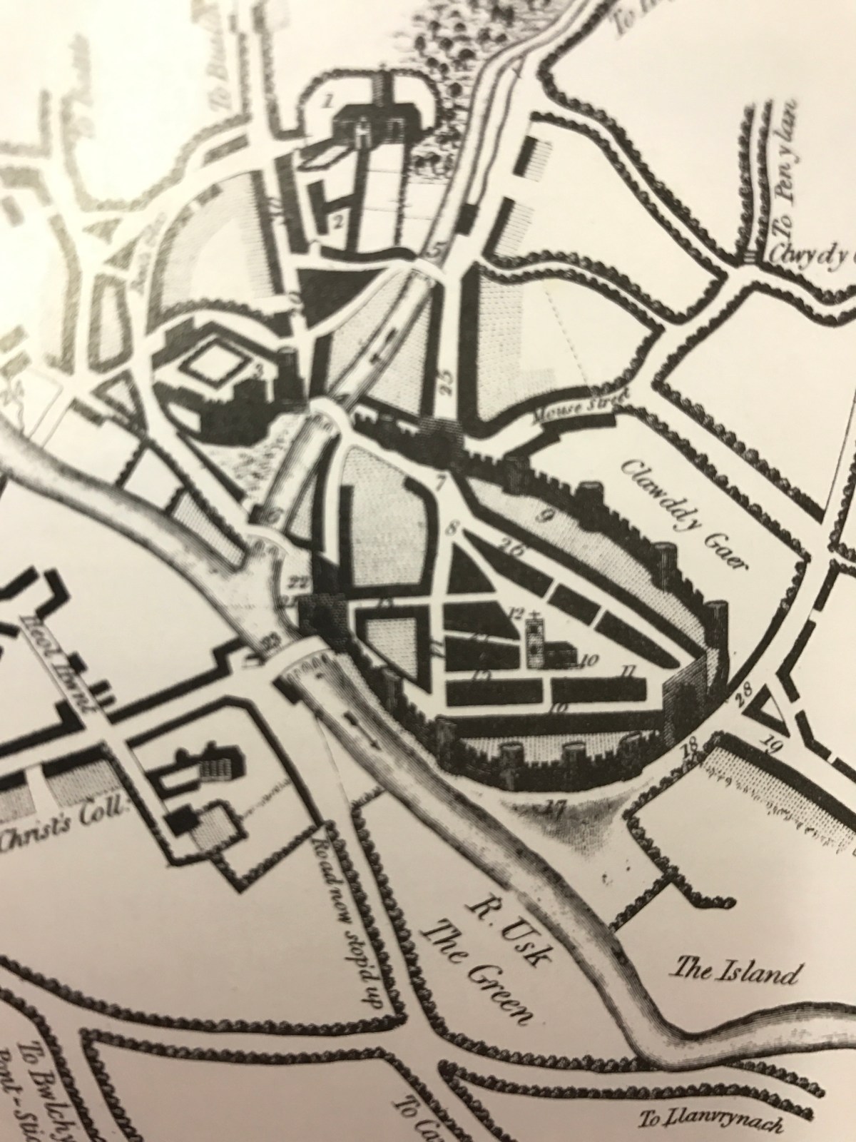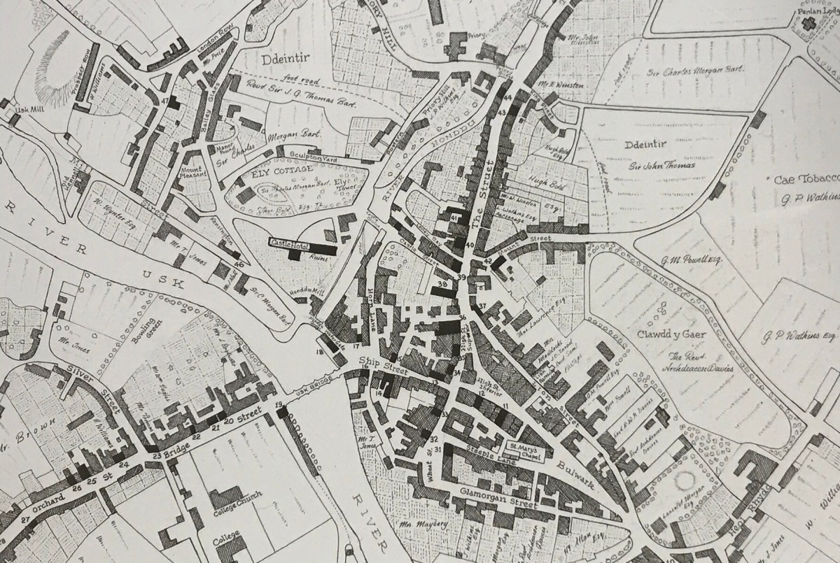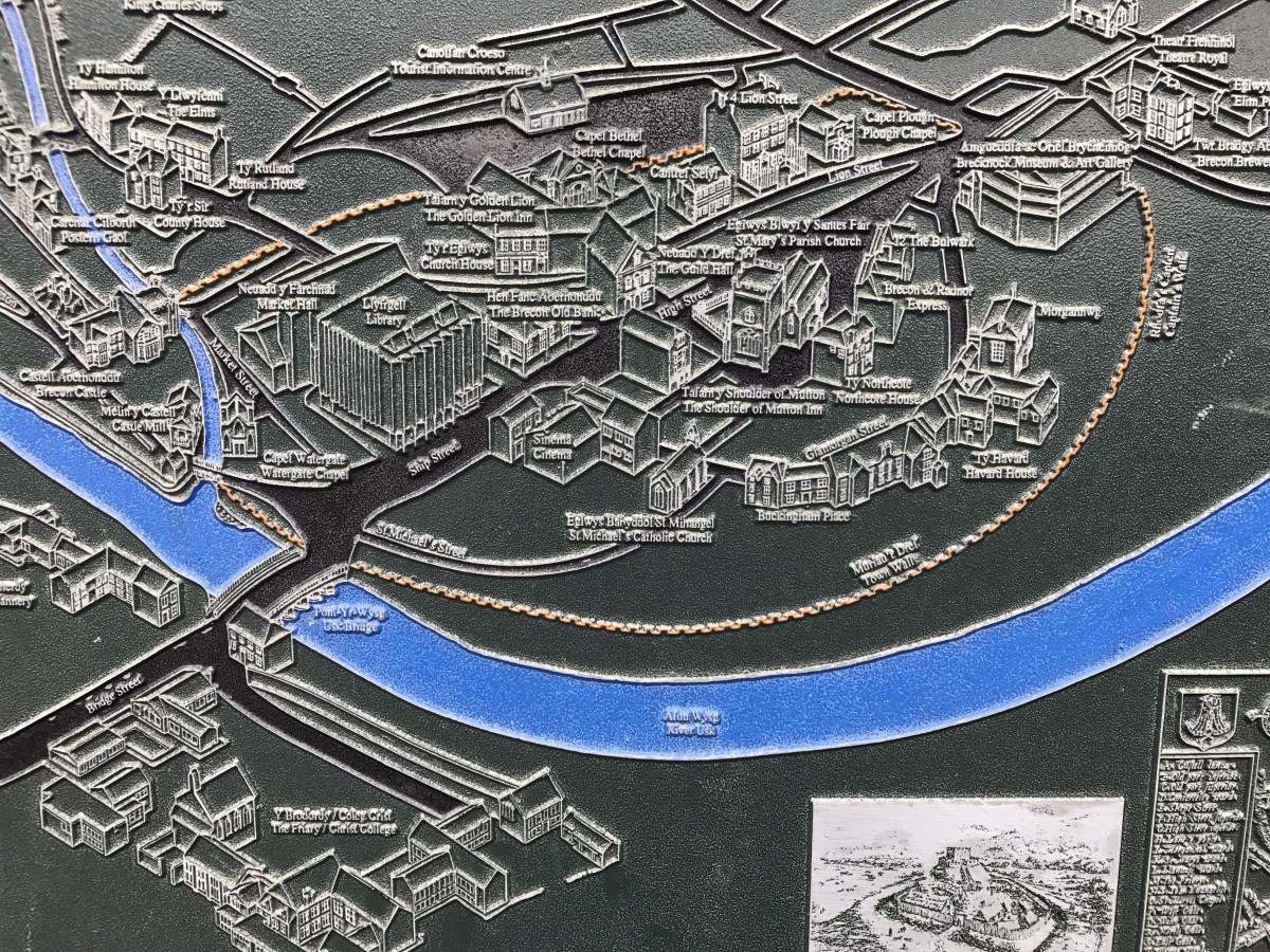 Below: Brecon Town Map sourced from the ‘Guildhall’ wall in the centre of the town.