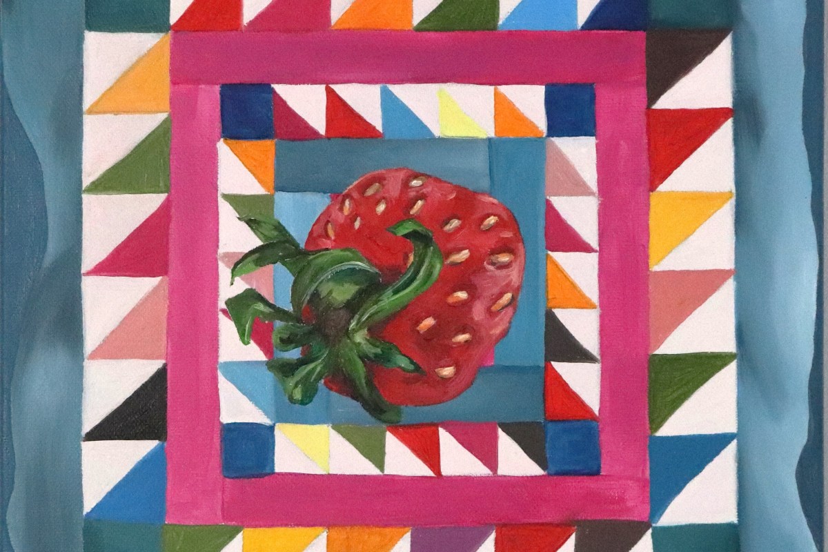 Emma Lou Andrews is a Caerphilly based artist. Her practice explores themes of joy and contentment, drawing inspiration from both indoor and outdoor spaces. Through the depiction of birds and fauna, combined with the gentle repetition of patterns inspired by quilts from her home, Emma explores the relationship between belonging and connection in the domestic and natural world; and how this feels to her.