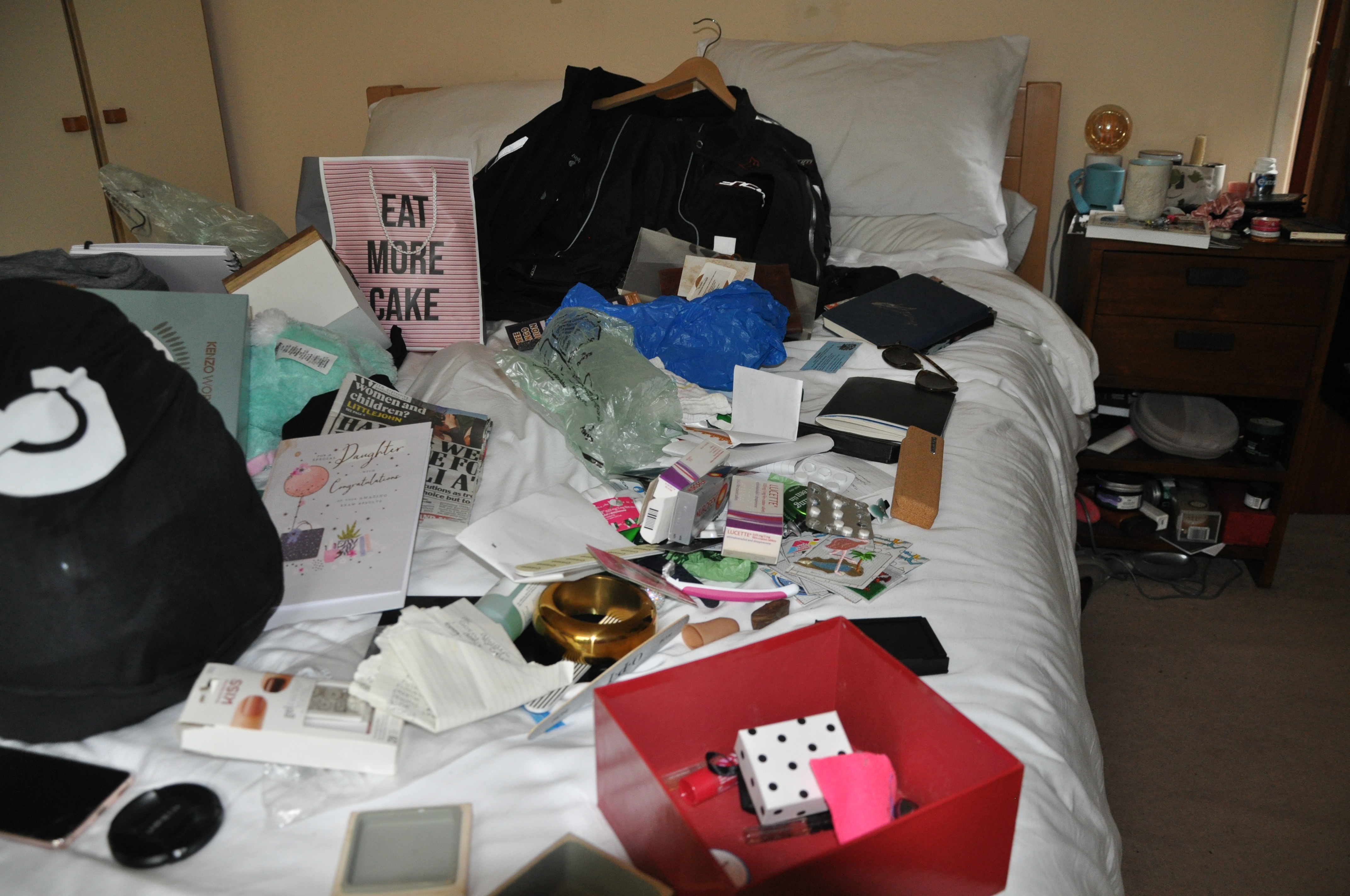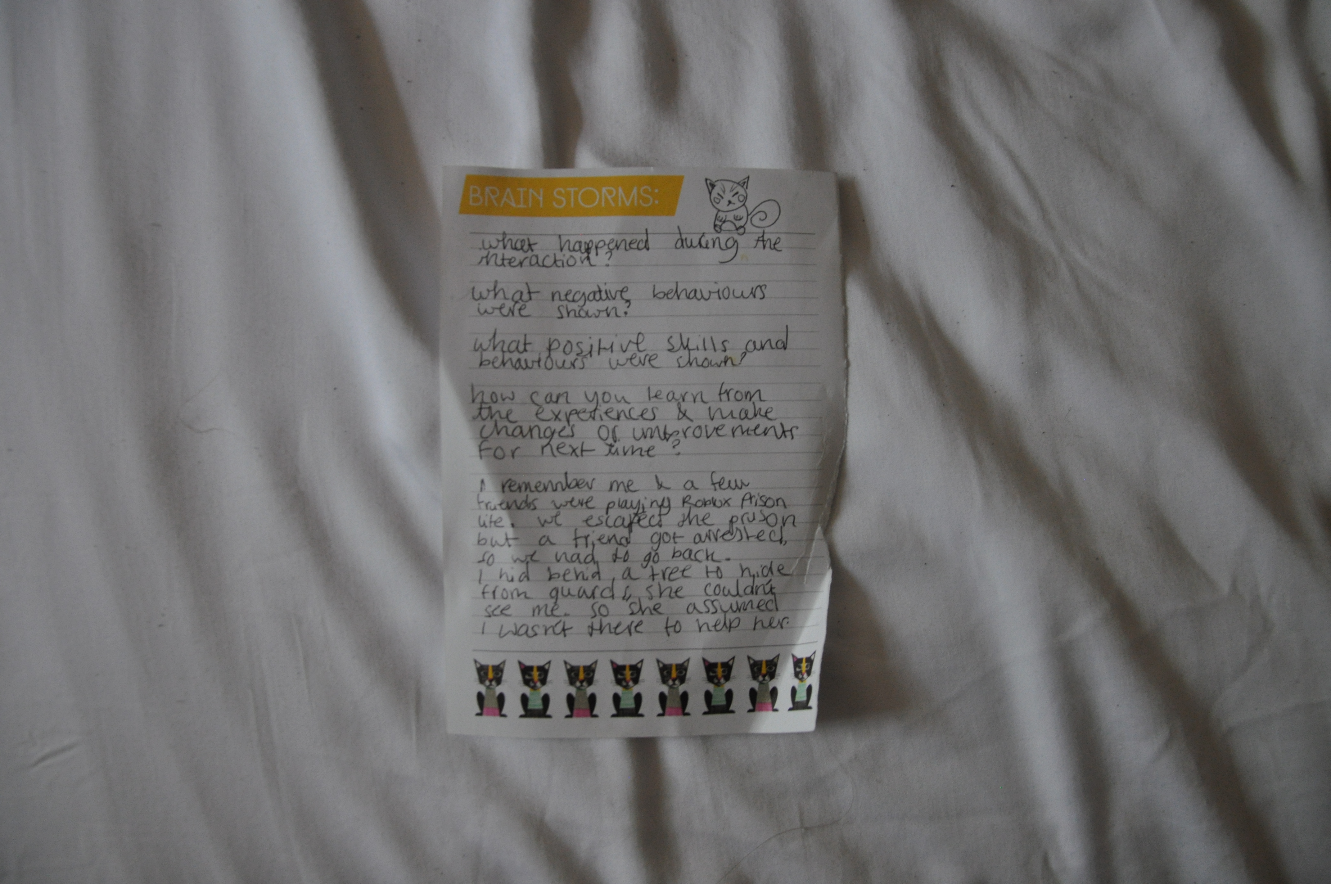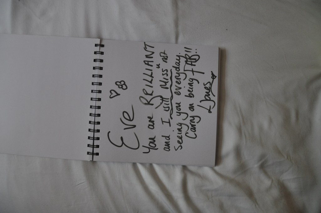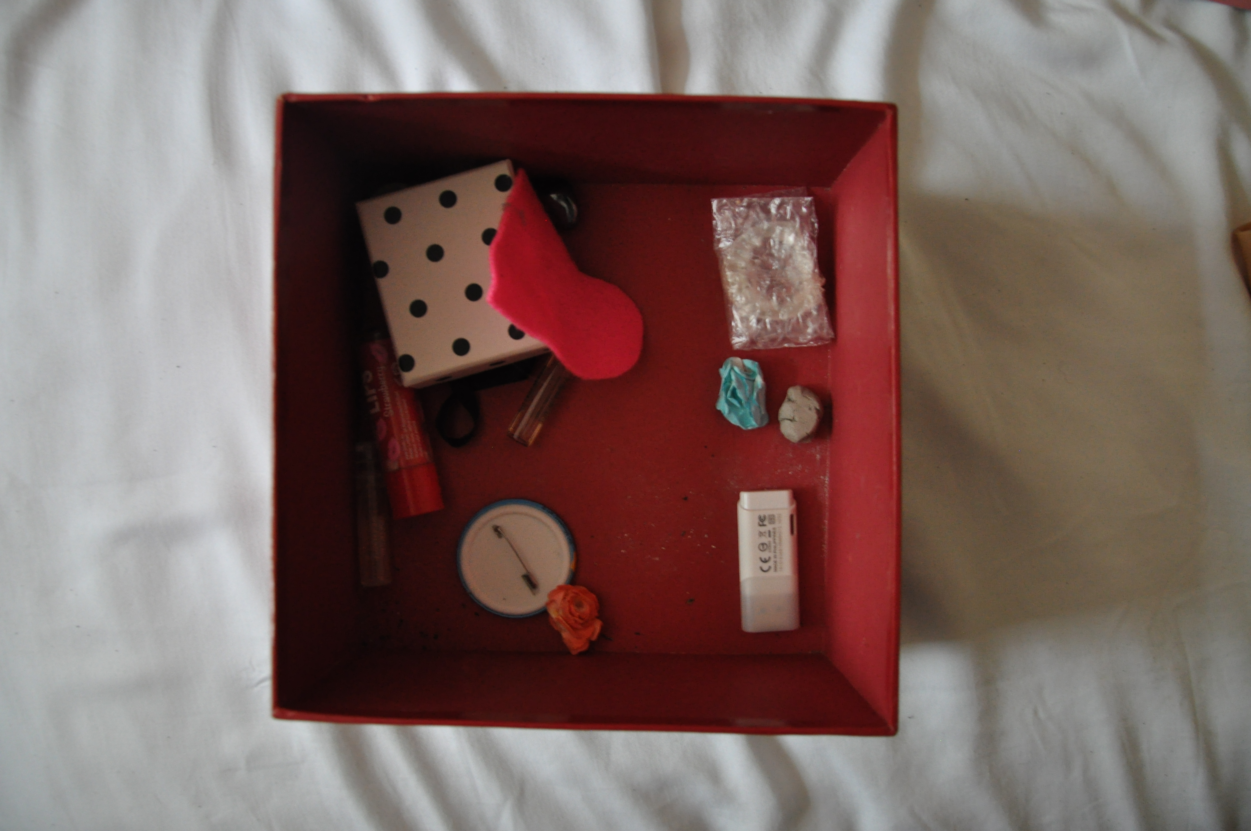 Putting together the outfit was a task, using a blue boiler suit I stitched and superglued some belongings on there which I already had to make the garment more personal. A polaroid of my dog, Welsh flag, a British flag, a children’s coloured circle, a letter badge (to stand for my name), gifted keyrings and a butterfly hair clip.