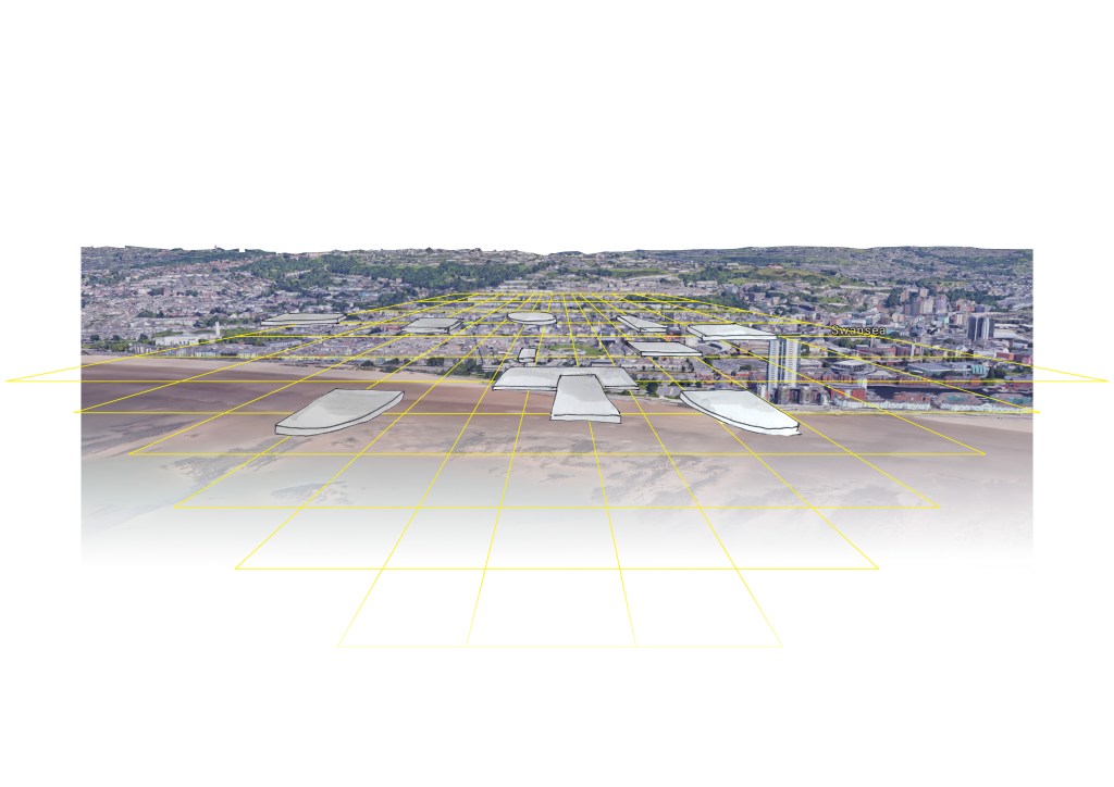Civic platforms become airborne and operate within the above civic level, offering vistas of the landscape and cityscape and explore the horizontal potential of Swansea.
