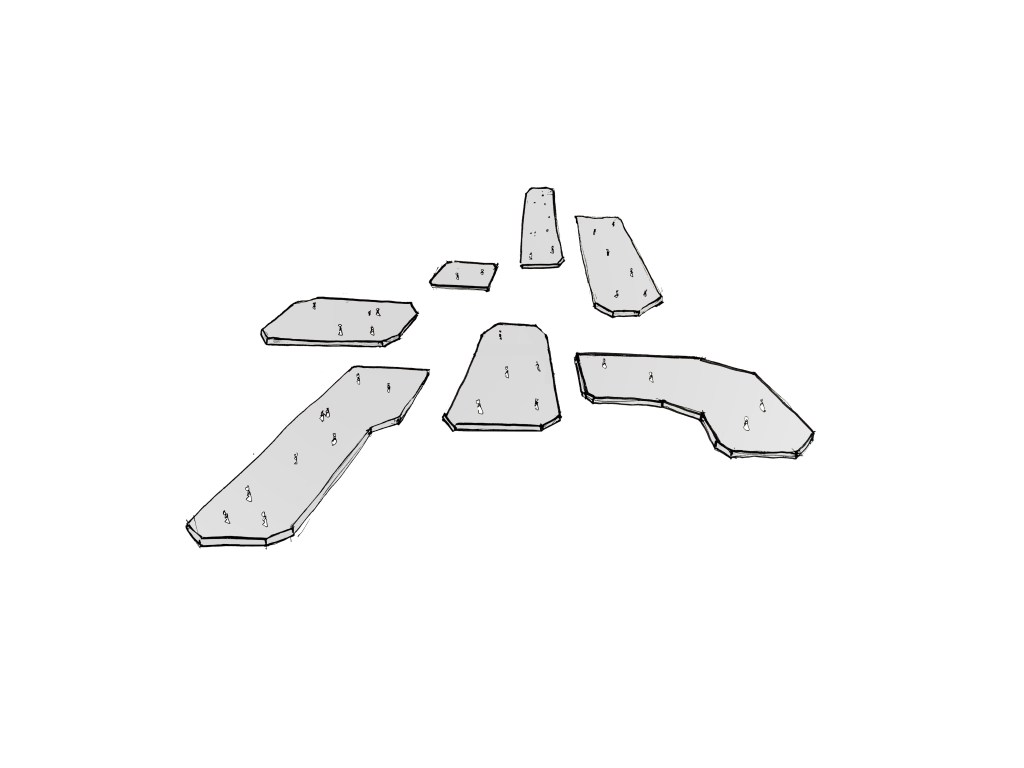 Concept animation exploring a possible method of modularity and mobility for the Civic Centre, creating airborne environments, repurposing the existing architectural forms.