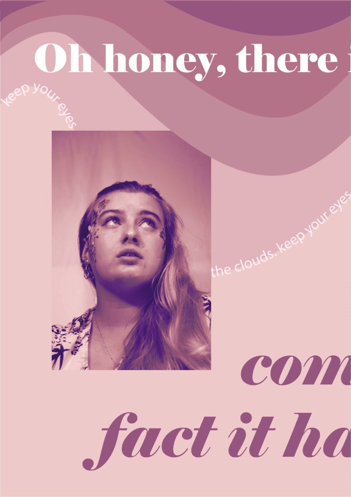 This week I began to develop a series of mock pages for a zine. I pulled influences from 2000s styled advertising and retro computer games because that was my first experience of graphic design growing up. My initial thoughts on colour palettes was pastel pinks and vibrant blues. I wanted to create an iridescent title and I experimented with a myriad of different coloured gradients until I found an effect I was pleased with.