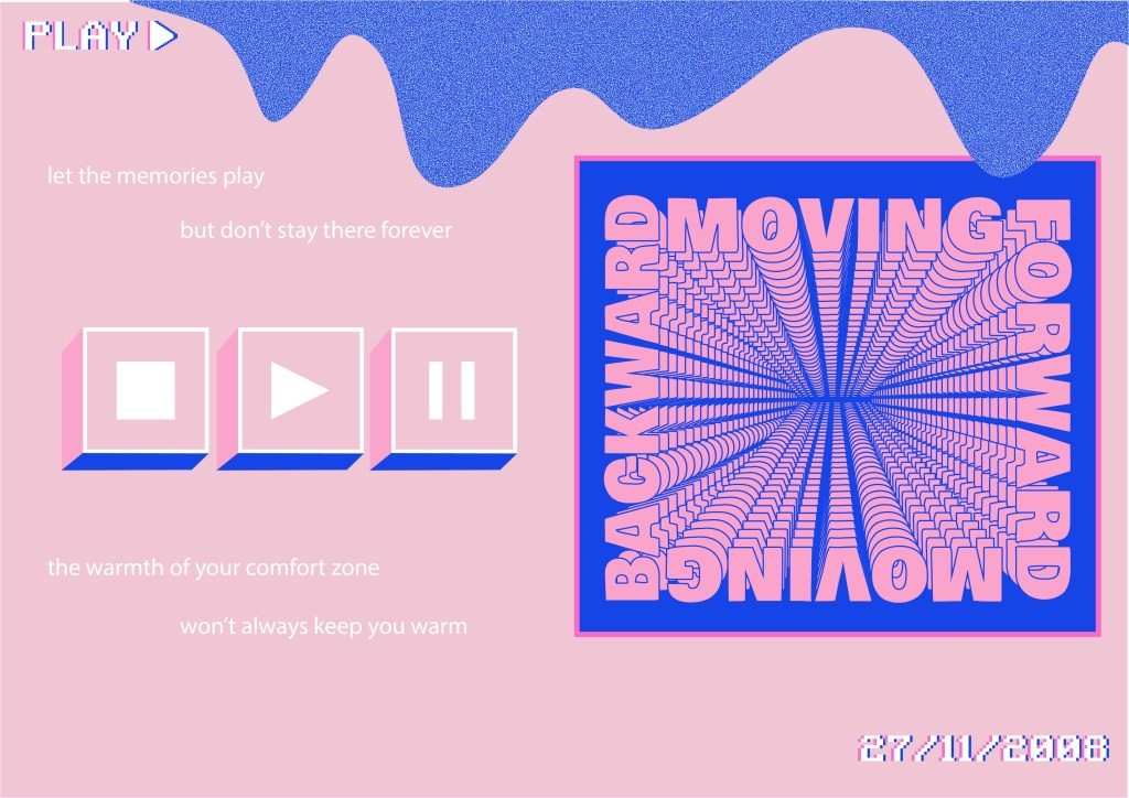 The main concept and story behind the zine is how I have become addicted to romanticising the past. For me, it’s easy to paint my childhood in such a glowing brush that I find it difficult to appreciate current life in the same light. With each major life change, I am forever believing that those were the good old days, without giving value to the present. With these graphics and words in my zine, I am attempting to fall back in love with my current life, rather than only enjoying the moments when they become memories. Forever looking back is no way to live life.